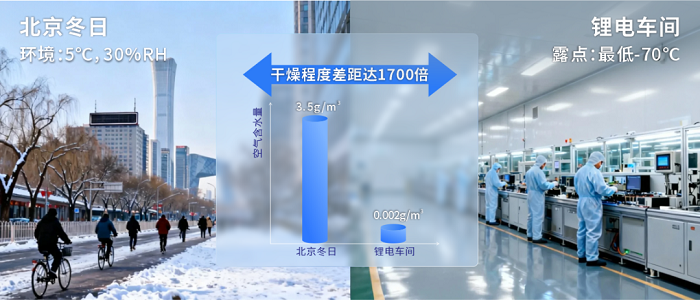 冬意渐浓,干冷的空气已然能被肌肤感知。然而,在锂电池制造的尖端领域,车间露点对“干燥”的苛求早已超越了体感范畴,必须倚仗一把可靠的科研标尺——露点传感器。